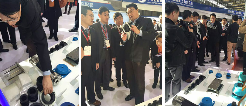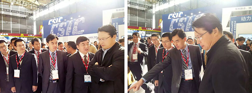 2015年12月3日,中船船舶重工集团公司胡向鸣董事长一行莅临七一一所及无锡齐耀华东隔振科技有限公司海事展展台,七一一所董建福所长、高晓敏书记亲自向胡董事长作产品介绍。胡董事长对齐耀公司的隔振产品给予了肯定。