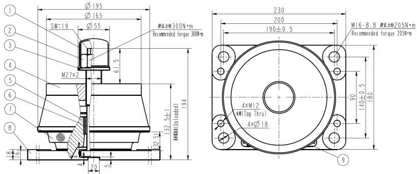 6.Internal Buffer; 7.Resilient Mounting; 8.Base Casting; 9.Name Plant;