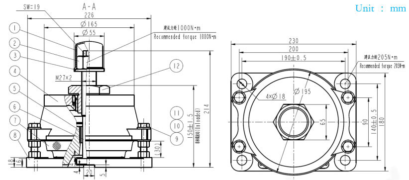 6.Internal Buffer; 7.Resilient Mounting; 8.Base Casting; 9.Bolt; 10.Nut; 11.Washer; 12.Adjusting Nut