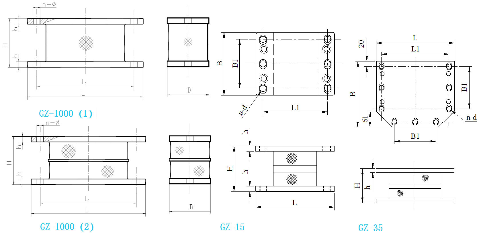(1)GZ type series vibration isolator is composed of top and bottom panel, rubber body, etc;