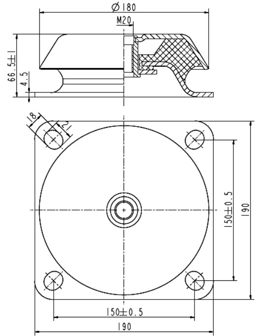 (1) CKM rubber vibration isolator is designed with a fall protection structure, which can maintain the connection of equipment and isolator and prevent fall-off when the rubber body is damaged or broken;