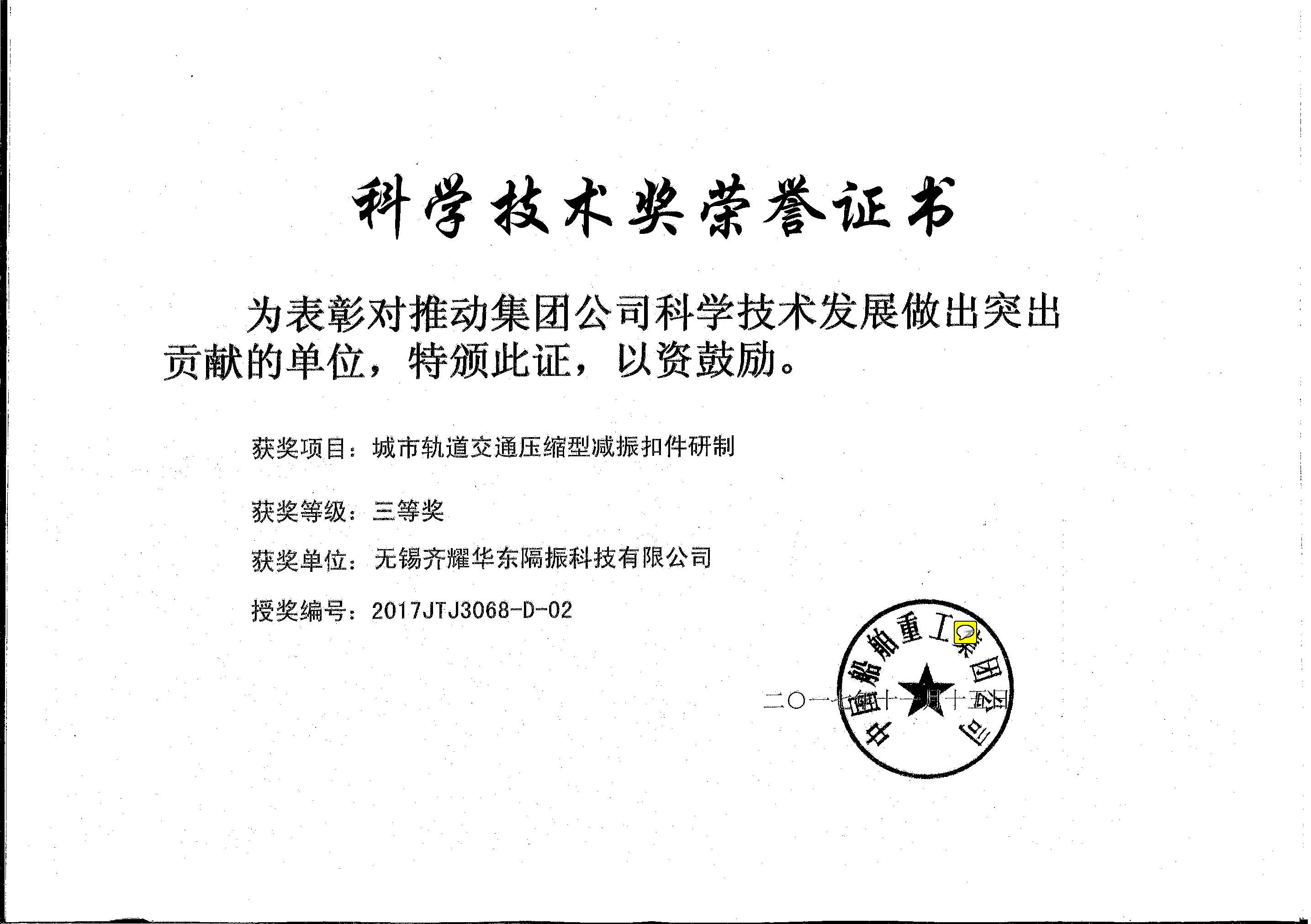 三等奖。此次获奖标志着无锡齐耀华东隔振科技有限公司的隔振器自主生产设计、工艺流程、产品质量等方面的能力得到了大幅提升,对于进一步提高企业知名度及市场竞争力将发挥积极作用。