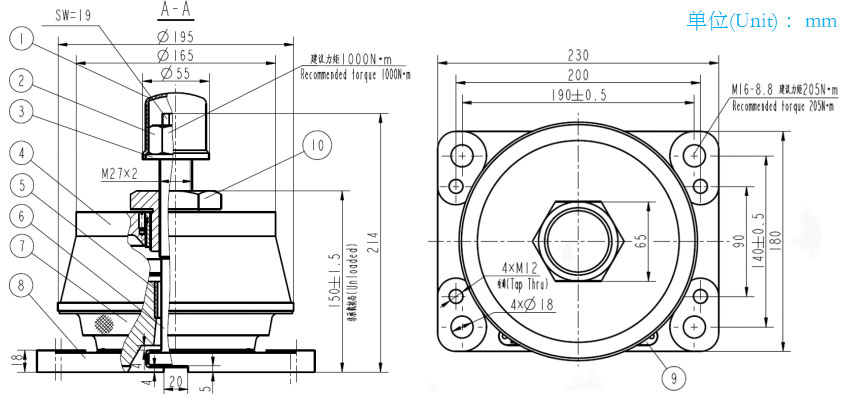 同样的外形尺寸和安装尺寸,可选配不同型号的橡胶锥形减振元件,得到不同的承载能力,有利于隔振布置时的载荷分配;