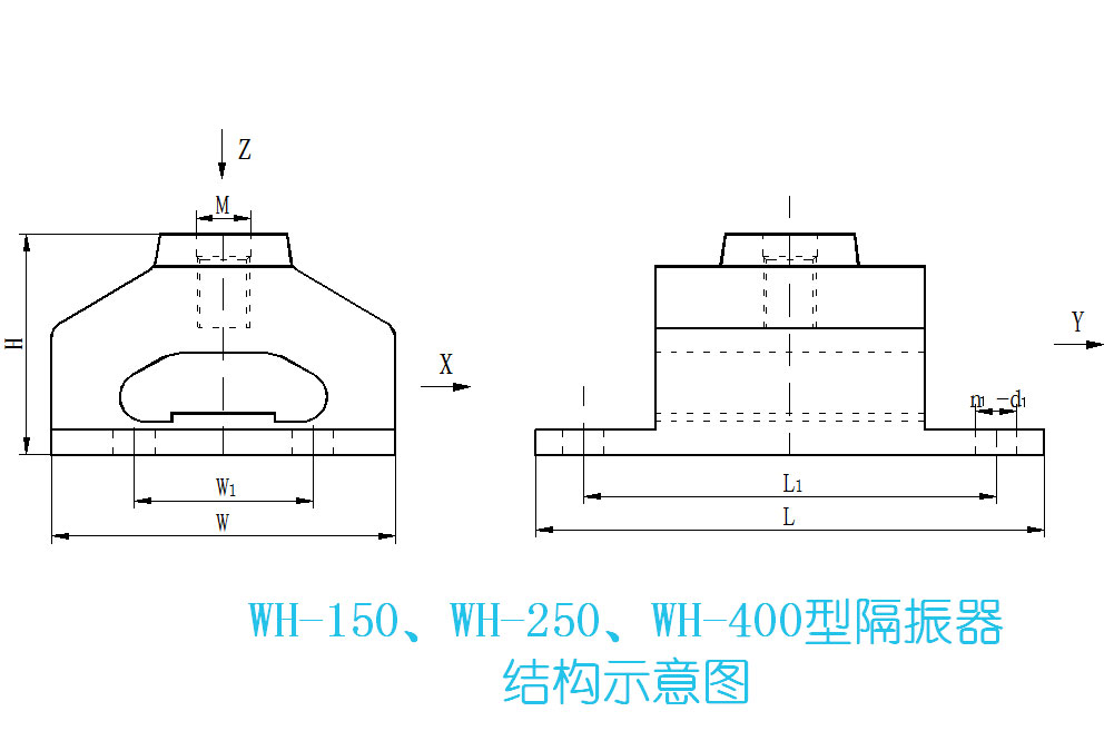 WH型系列剪切压缩式隔振器主要规格和技术数据